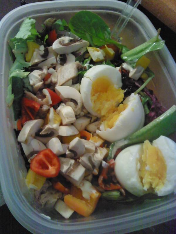 Had a couple friends over last night to jam and practice for the "birthday concert" on Saturday. Fun times. I had a beer so maybe that explains my low WI this morning? Or it could be, yanno, the caloric deficit combined with pooping a lot. I made an epic salad for lunch yesterday: