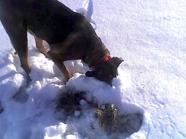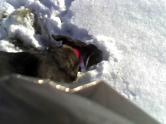 I got a couple photos of my dog in the snow yesterday with my cell phone, here they are! Sorry for the poor quality, my phone is old and not so high-tech.